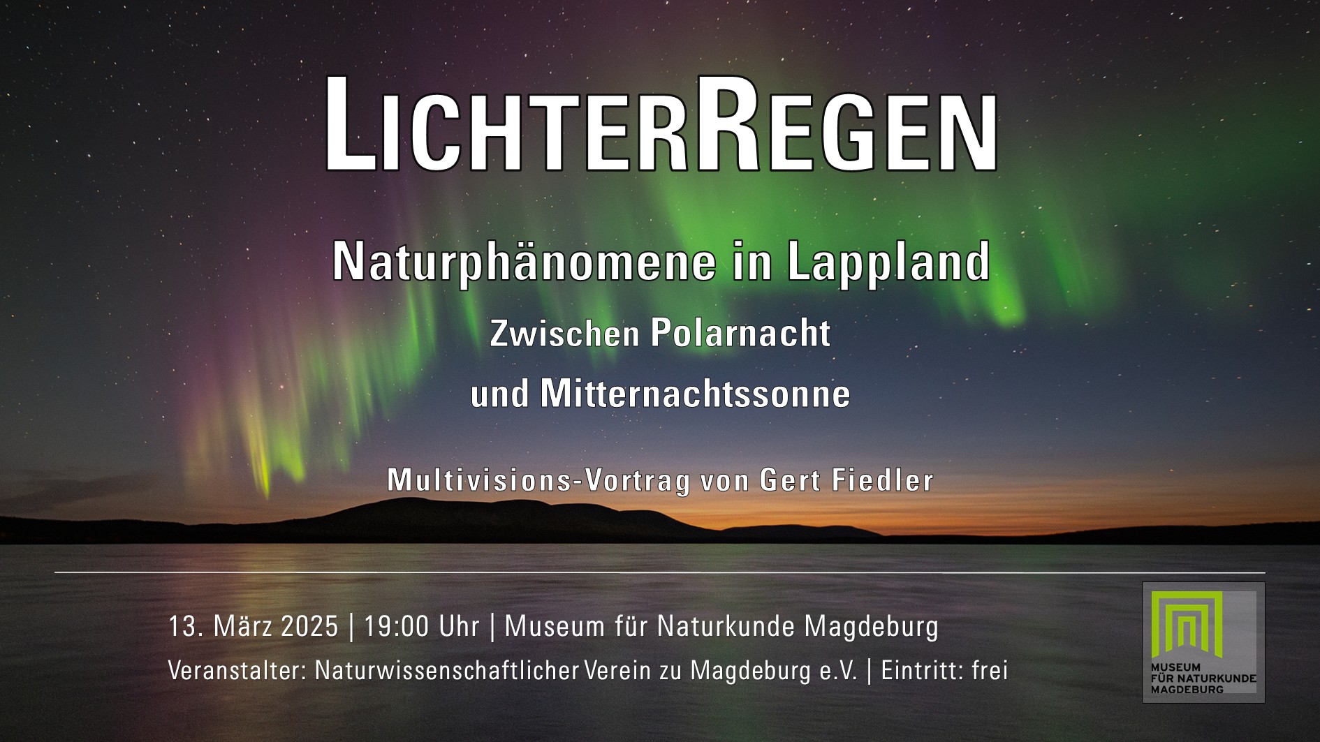 - März 2025 – Museum für Naturkunde Magdeburg – Live Reportage „Naturphänomene in Lappland“, 13. März 2025