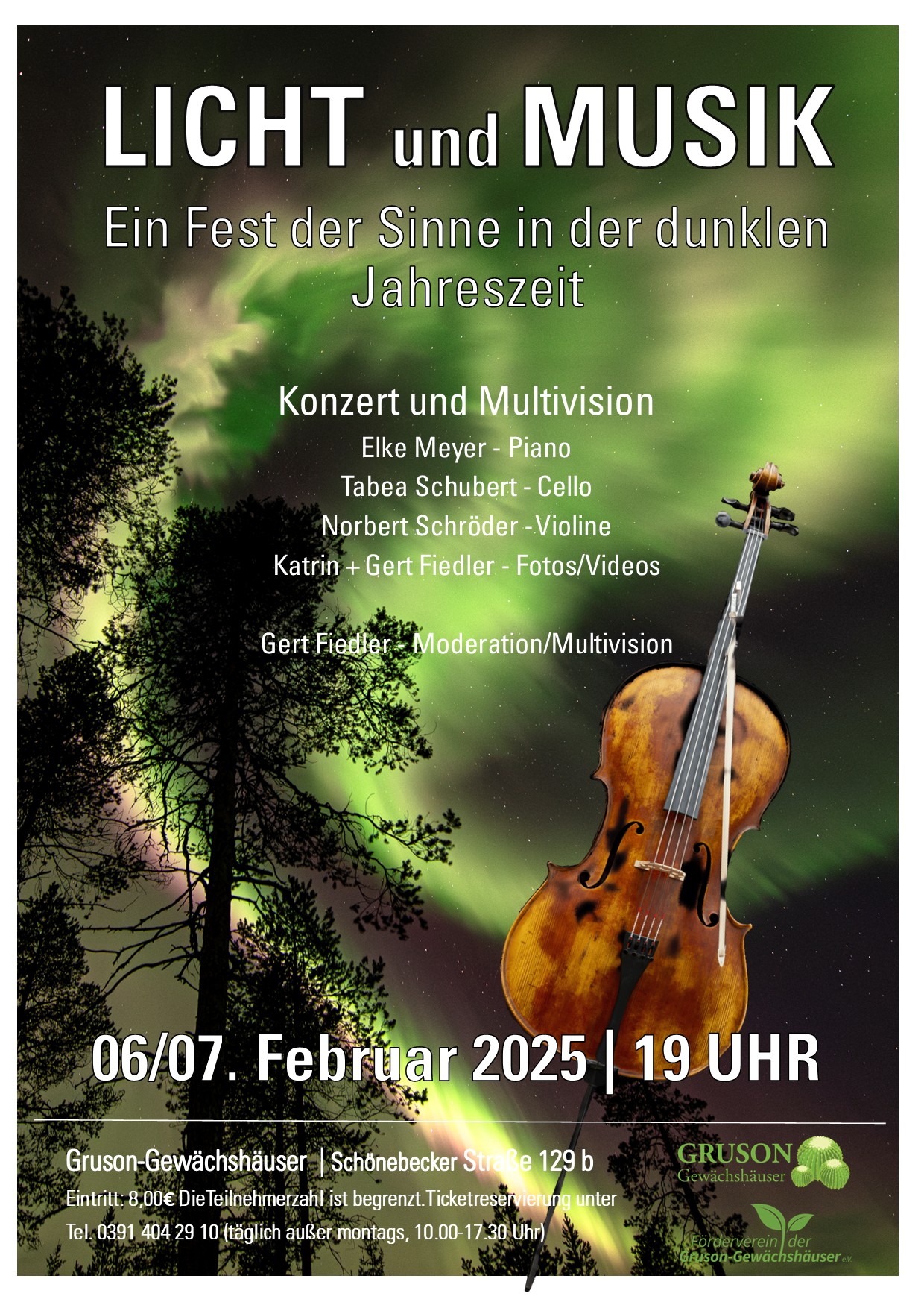 - Februar 2025 – Gruson-Gewächshäuser Magdeburg – „Licht und Musik – Ein Fest der Sinne in der dunklen Jahreszeit