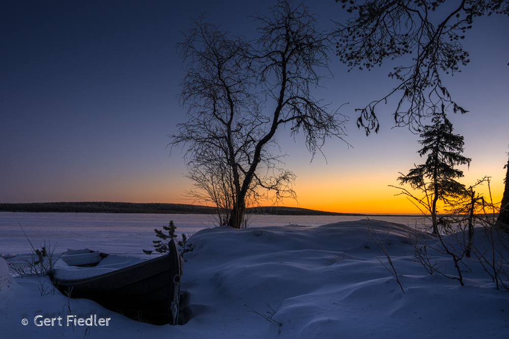 Kaamos ist jedoch alles andere als Dunkelheit. Wenn die Sonne einige Stunden versucht die Horizontlinie zu überschreiten, leuchtet der Himmel in gelb, orange, rosa, violett und verwandelt die Landschaft in einen pastellfarbenen Traum.