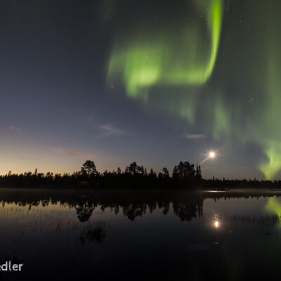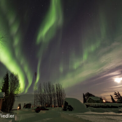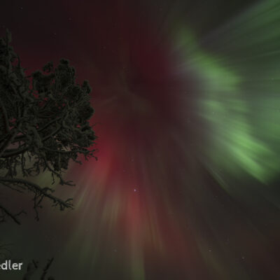 Wenn das Nordlicht – die Aurora borealis – mit dynamischen Bewegungen sichtbar ist, spricht man gern davon, dass die „Lady Aurora“ zum Tanz bittet. Breitet sich das Polarlicht direkt über dem Betrachter aus, sind die sehr schnellen Bewegungen des Naturphänomens sehr gut zu beobachten.