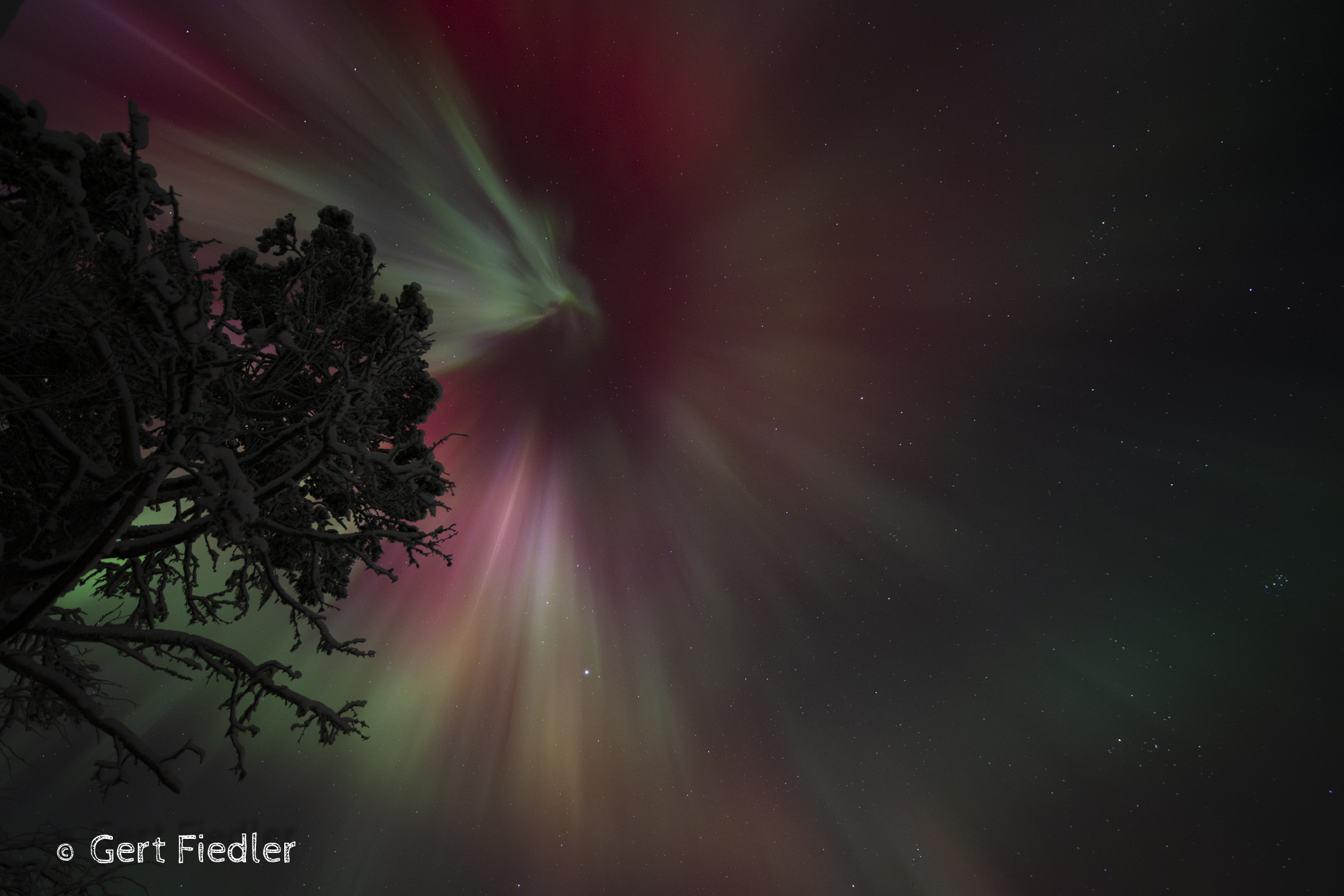 Wenn das Nordlicht – die Aurora borealis – mit dynamischen Bewegungen sichtbar ist, spricht man gern davon, dass die „Lady Aurora“ zum Tanz bittet. Breitet sich das Polarlicht direkt über dem Betrachter aus, sind die sehr schnellen Bewegungen des Naturphänomens sehr gut zu beobachten.